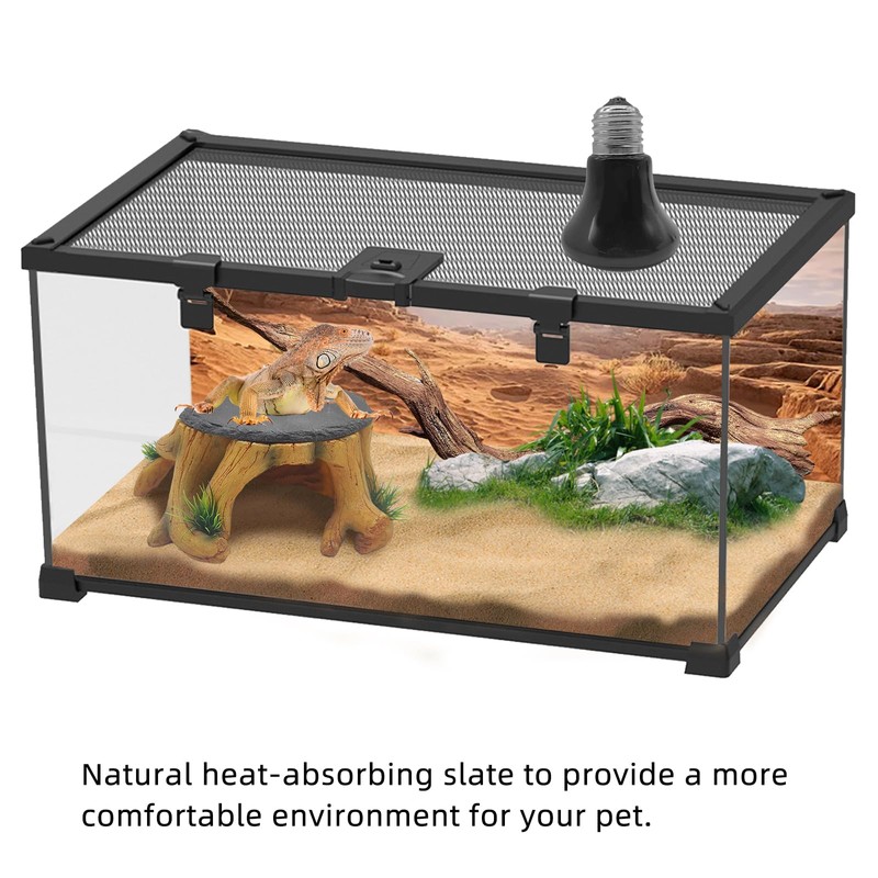 The Bearded Dragon Heat Storage Hiding Cave, a versatile designed to provide the perfect habitat for your beloved reptiles. This spacious Hiding Cave comes with a range of accessories and features that cater to the needs of various reptile species, including bearded dragons, geckos, turtles, and more. One of the standout features of this Hiding Cave is the Turtle Basking Platform, which provides a comfortable and elevated space for turtles to bask and soak up essential UV rays. This platform is also suitable for other reptiles such as bearded dragons, offering them a warm and inviting spot to relax. For leopard geckos and other reptiles that require a humid hide, this hide cave includes a specially designed: with Heat Storage Slate Stone.This cave not only provides a secure hiding place but also helps maintain proper humidity levels within the cave. To create a natural and engaging environment for your reptiles, we offer a range of accessories such as basking rocks, lizard tank accessories, and bearded dragon hides.These additions allow your reptiles to climb, explore, and find their own cozy hiding spots. With its large size and ample space, this cave ensures that your reptiles have enough room to move around comfortably.The sturdy stand and stackable design make it easy to create a multi-level habitat or add extra accessories as needed. Overall, this Bearded Dragon Reptile hide cave combines functionality, aesthetics, and the well-being of your reptiles. It's the perfect choice for any reptile enthusiast looking to provide a comfortable and stimulating environment for their scaly friends.