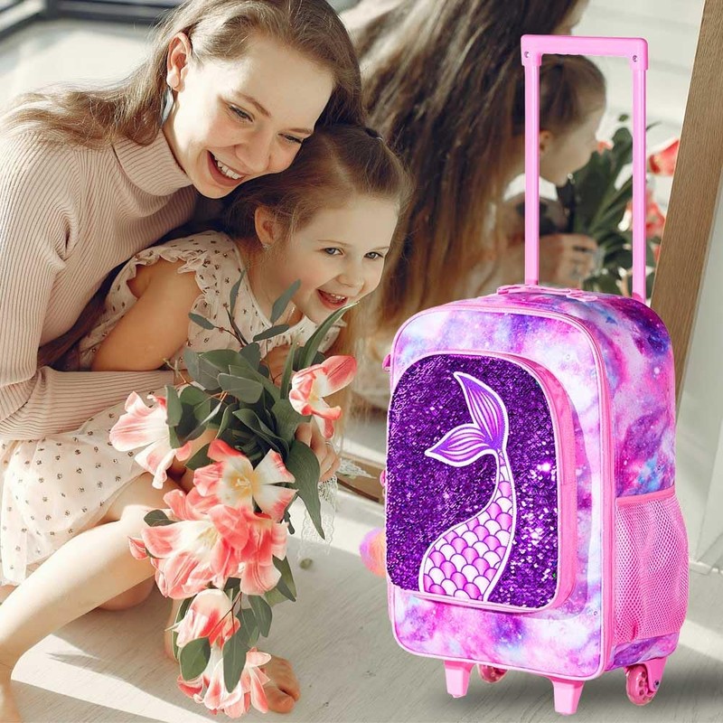 gxtvo Kids Suitcase with Wheels for Girls, Mermaid Rolling carry on Luggage for Toddler Children