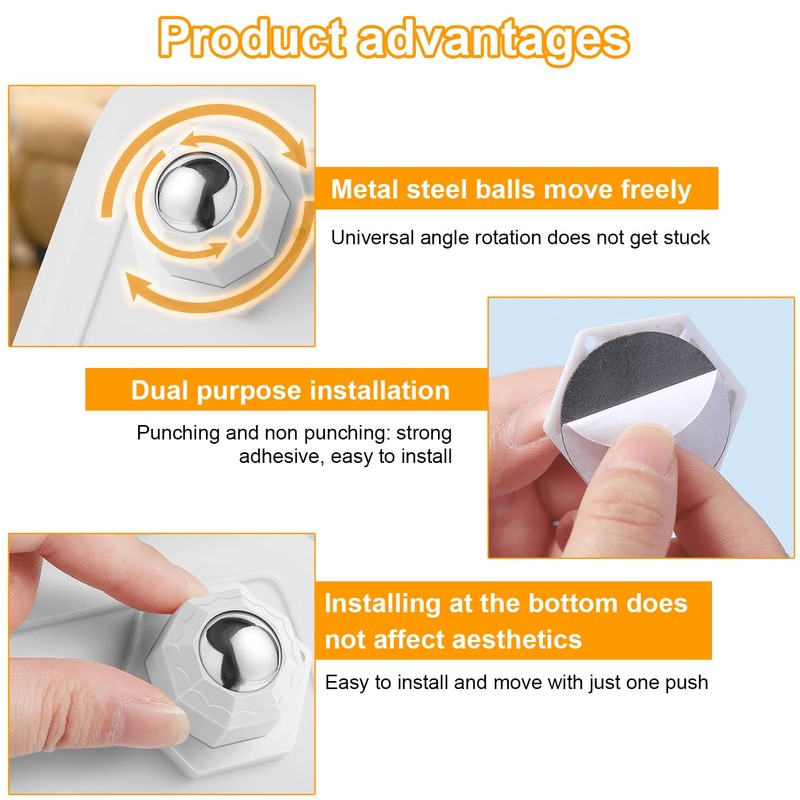 - 360 Drehbar: Die m?belrollen selbstklebend sind um 360 drehbar, sodass sie Ihre m?bel in jede gewnschte richtung bewegen k?nnen, egal, ob sie schwere sofas, schr?nke oder andere einrichtungsgegenst?nde verschieben m?chten, diese rollen machen es einfach