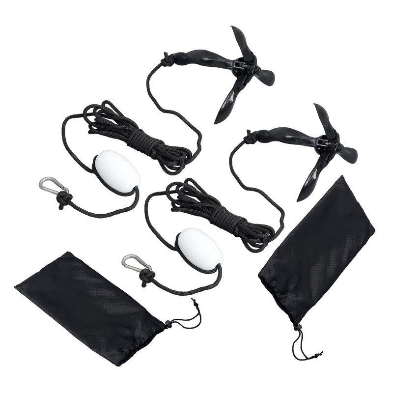 - Package include: 2 x Anchors, 2 x Extra long 40ft marine ropes, 2 x Nylon storage bags, 2 x Buoy balls, 2 x Stainless steel snap hooks