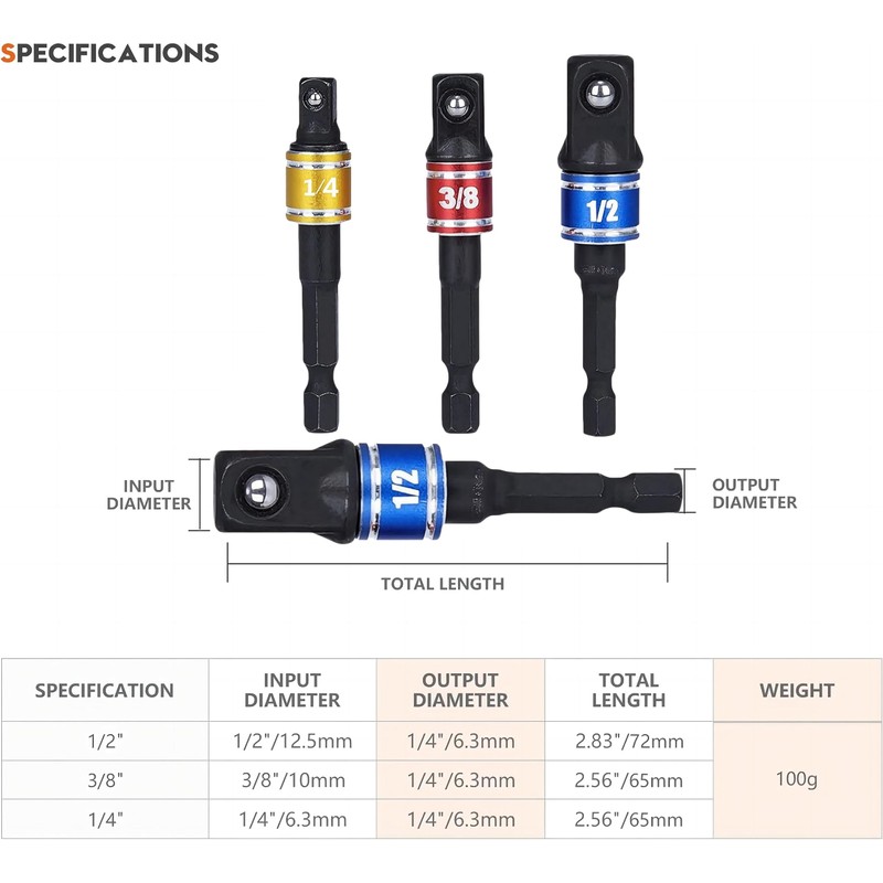GY-3-Piece 1/4 Inch 3/8 Inch 1/2 Inch Cr-V Hexagonal Socket Adapter, Socket Spanner, Socket Set + 1 Piece, 105° Angle Holder, Angle Screwdriver Attachment Adapter, 1/4 Inch Hexagonal Handle