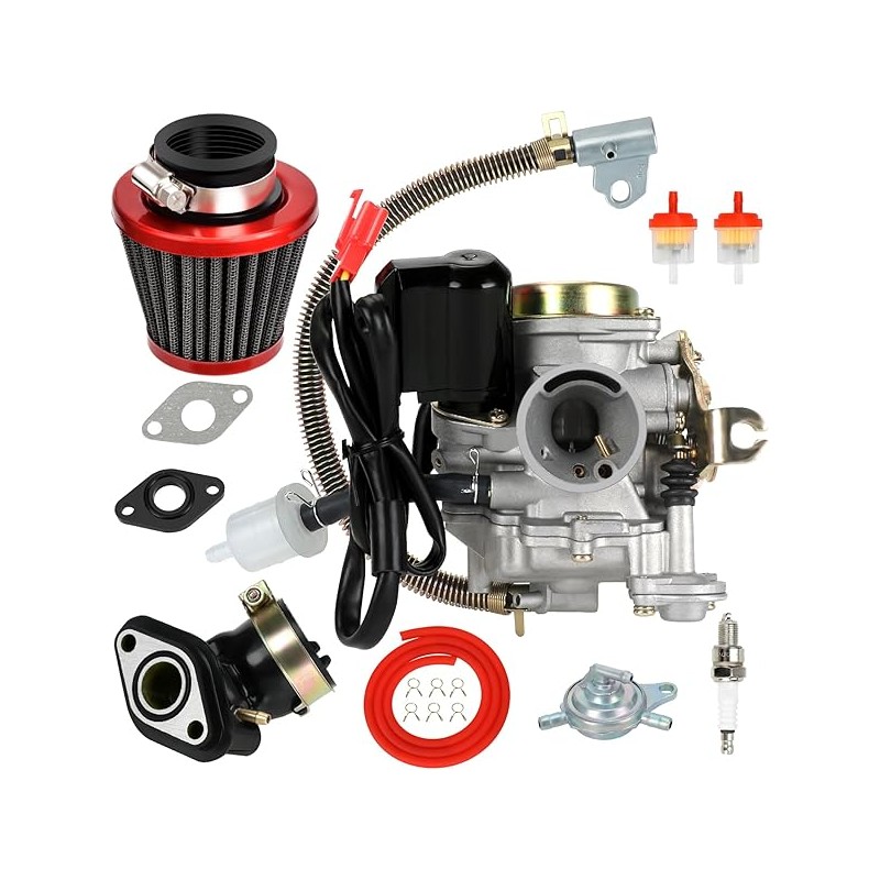 GY6 50cc Carburetor PD18J Carb Kit Compatible with Tao tao 49cc 50 ATM50 Pony VIP Most Chinese Scooter Moped 139QMB 4-Stroke Engine Roketa Jonway Lance ATV Go Kart Parts with Fuel Line