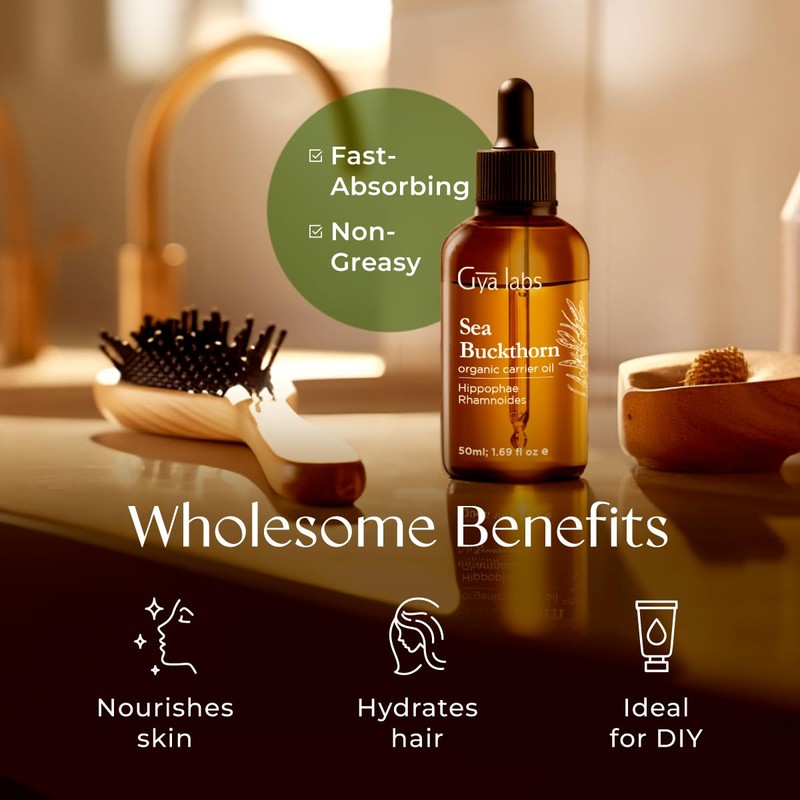 Gya Labs Organic Sea Buckthorn Oil - 100% Pure Natural Sea Buckthorn Carrier Oil for Skin, Face, Nails & Hair - Soothing & Moisturizing (1.69 Fl Oz)