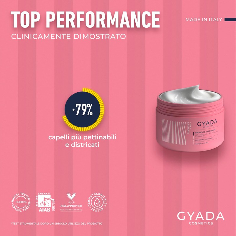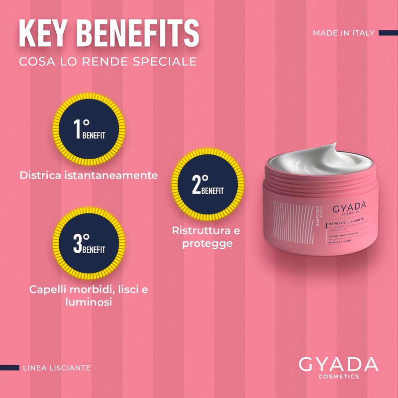 GYADA COSMETICS, glättende, restrukturierende, disziplinierende Packung, verleiht Glanz für seidiges Haar, 250 ml