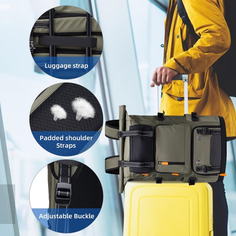 - Easy to carry – the waterproof rolltop backpack has an ergonomic back system with breathable, padded back and pressure-reducing, granular straps that reduce strain on the go. The sports backpack makes it easier to carry it on the go. Perfect for daily commuting, travelling by plane, work and business trips.
