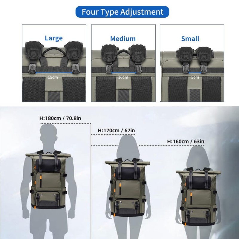 - Practical design – the shoulder straps of this rolltop backpack waterproof can be adjusted to your body shape and shoulder width, so you can carry the backpack comfortably. This laptop backpack with waterproof Oxford textile on the outside and waterproof pockets on the inside, suitable for long time outdoor activities.