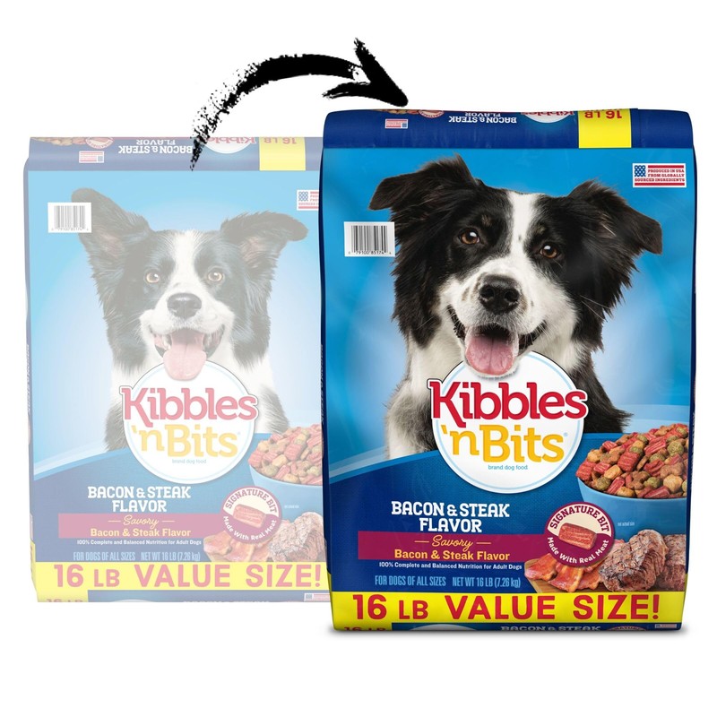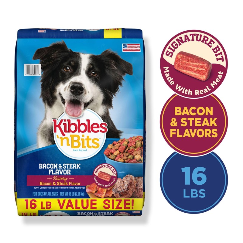 GYCO Kibles 'n Bits Savory Bacon & Steak Flavor Dry Dog Food, 16 lb. Bag. Proudly Produced from Globally Sourced Ingredients.