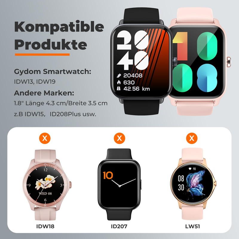 - Compatibility: screen protector compatible with IDW19 / IDW13 / IDW15 / 208Plus 1.8 inch smartwatch. Not only compatible with Gydom brand, but also compatible with other brands, such as: TOOBUR / Woneligo / Fitpolo / Parsonver / Loddery / Gardien / IOWODO / Tensky, etc. with the same smart watch size. Before purchasing, you can contact Gydom customer service in advance