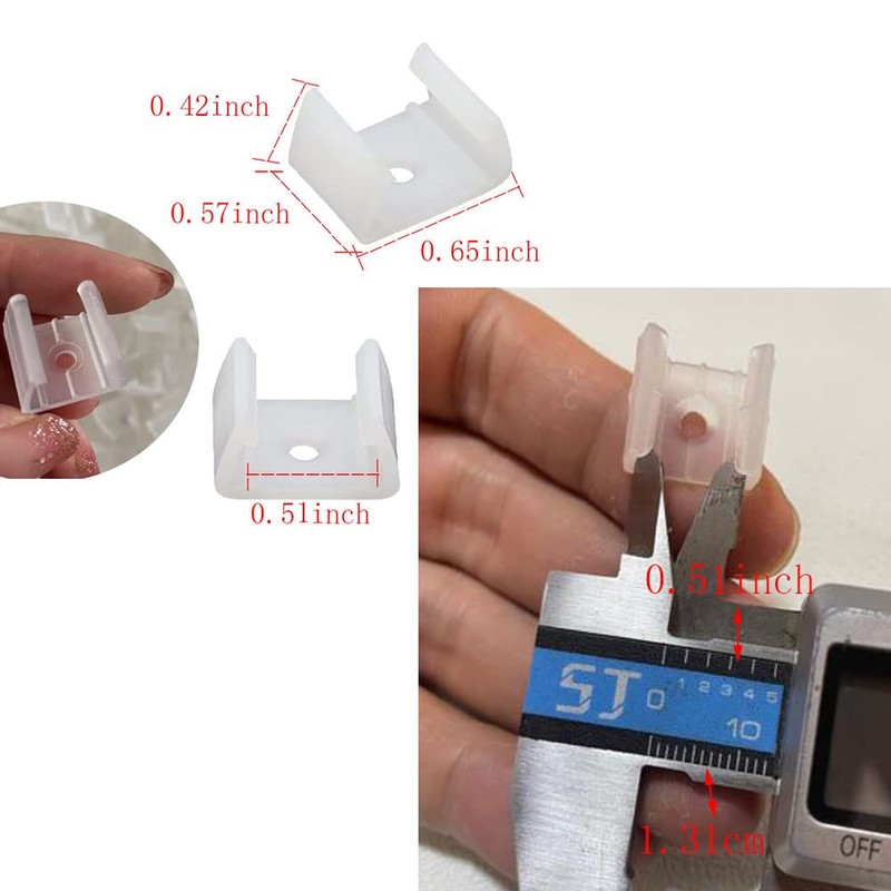 - Specifications: There are three sizes to choose from. Type A: inner width 10mm/0.39inch (for 8-10mm light strip); Type B: inner width 13mm/0.51inch (for 12-14mm light strip); Type C: inner width 16mm/0.63inch ( Applicable width 14-17mm light strip). Screw M3*12.