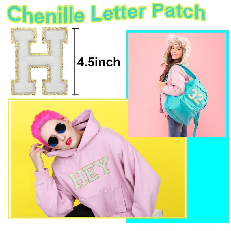 - Easy to Use: the gold glitters chenille iron on letter patch have heat sealant backing glue on the back, it is easy to use. You can use ironing or sew the patch directly.