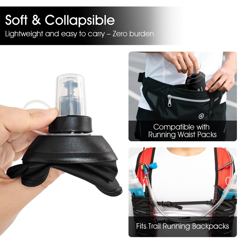 • Ultra-Compact and Squeezable Design: Made of food-grade TPU (thermoplastic polyurethane) flexible and lightweight material, BPA & PVC-free, the soft water bottle can be easily collapsed when empty. Its squeezable nature allows you to easily control the flow of water during activities such as running or hiking.