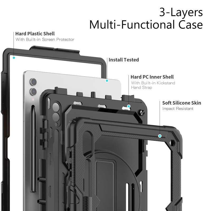 Gylint Case for S10 Ultra Case/Tab S9 Ultra Case/Tab S8 Ultra Case 14.6 Inch, with Screen Protector, Hand Strap, Shoulder Strap, Rotating Stand and Pen Holder Black