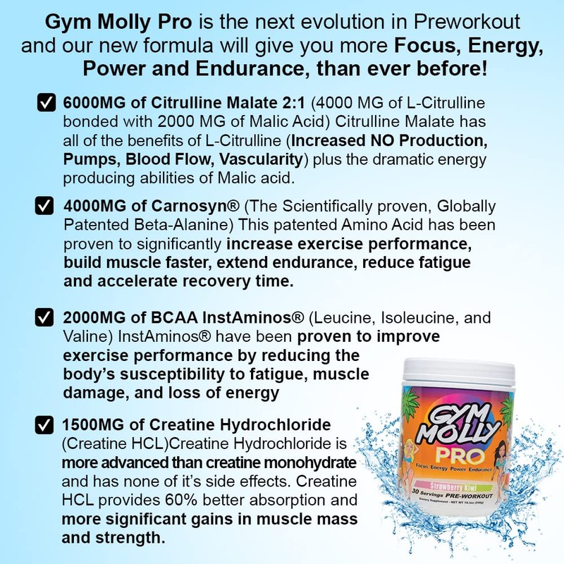 Gym Molly PRO - PreWorkout - 30 Servings - Strawberry Kiwi, 6G Citrulline Malate, 4G Beta-Alanine, 300mg Caffeine from Pure Coffee Plants
