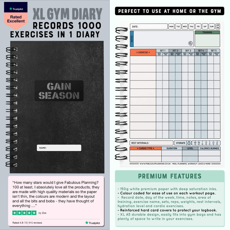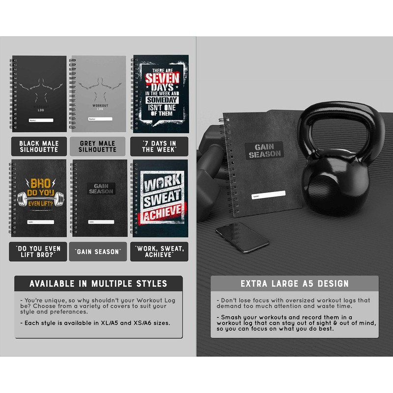 Gym Training Diary XL XS - Goal Setting 1000 Exercises, Track 100 Workouts and Record Progress Premium Journal (A5), Gain Season