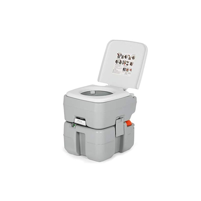 GYMAX Portable Toilet RV Toilet, 5.3 Gallon Waste Tank Camping Porta Potty with Level Indicator & Anti-Leak Water Pump for Outdoor Recreational Activities Boating RV Camping