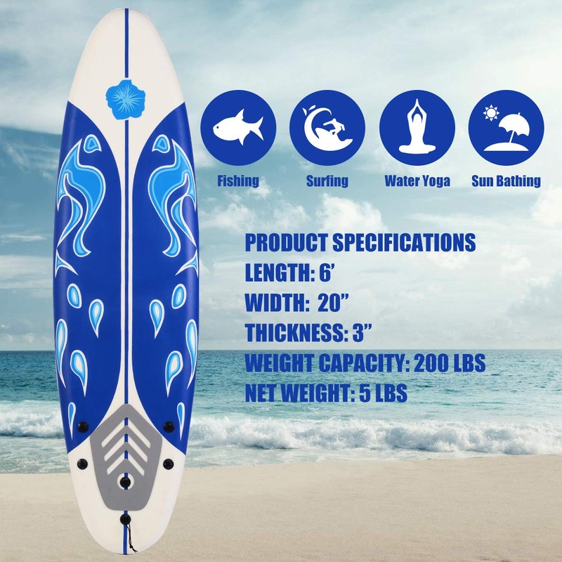 • 【Widely Use】 The size of this surfboard is 72'' X 20'' X 3''(L X W X Thickness), which is perfect for all ages, and even you are a beginner, you could enjoy surfing with this products. But still, please check the suitable size before purchasing.
