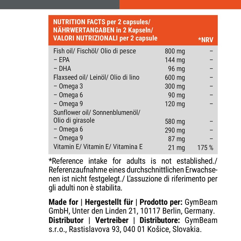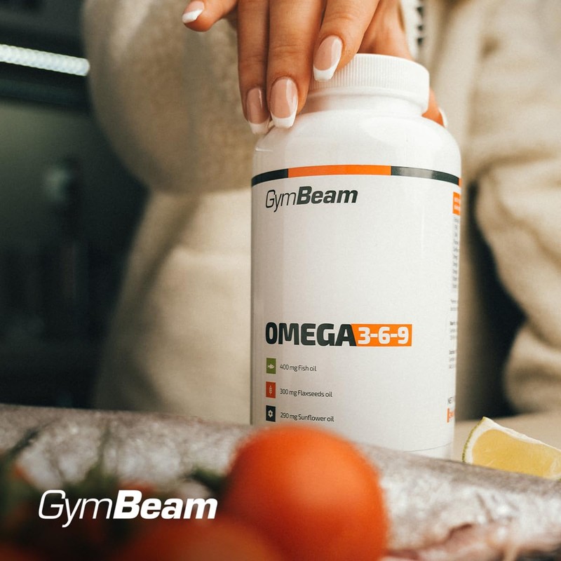 GymBeam GymBeam Omega 3 6 9 mit Vitamin E angereichert, pro Tagesdosis Fisch?l 800 mg, erh?lt Fisch-, Leinsamen- und Sonnenblumen?l, Lein?l-Kapseln, komplexe Quelle von Omega-3, Omega 6 und Omega 9 (120 caps)