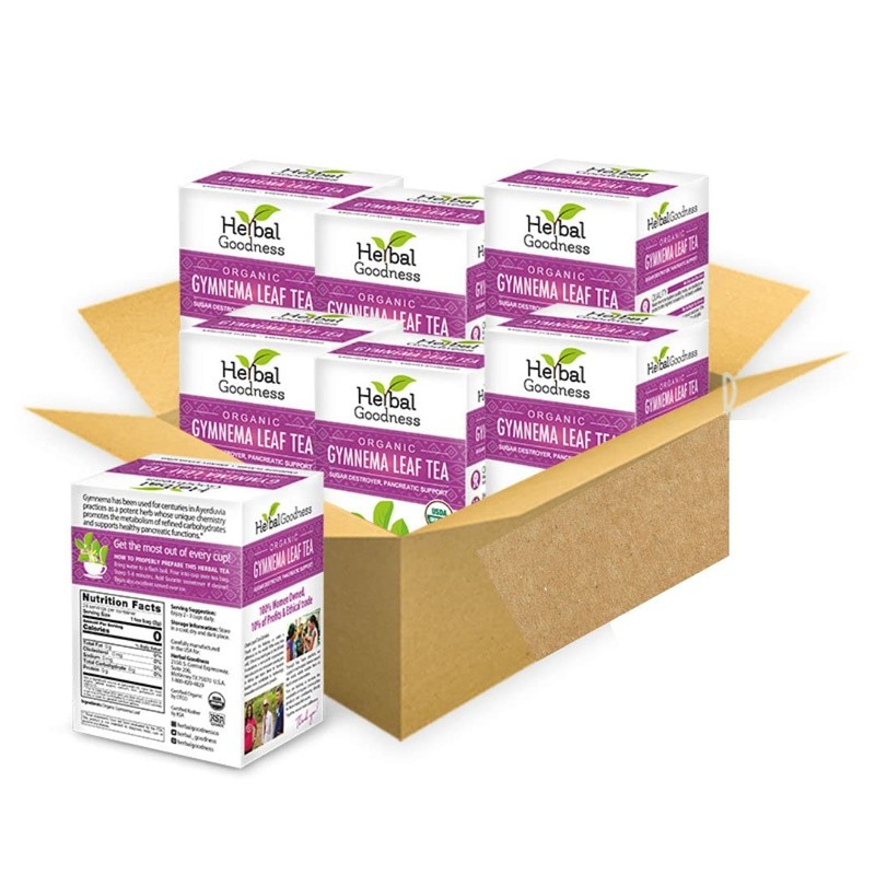 Gymnema Sylvestre Leaf Tea -20x- 6 BOXES - 24 teabags/box -No Caffeine, Kosher, Organic, GMO-Free, Gluten-Free-18 Bleach Free Tea Bags (0.83 oz/24g)