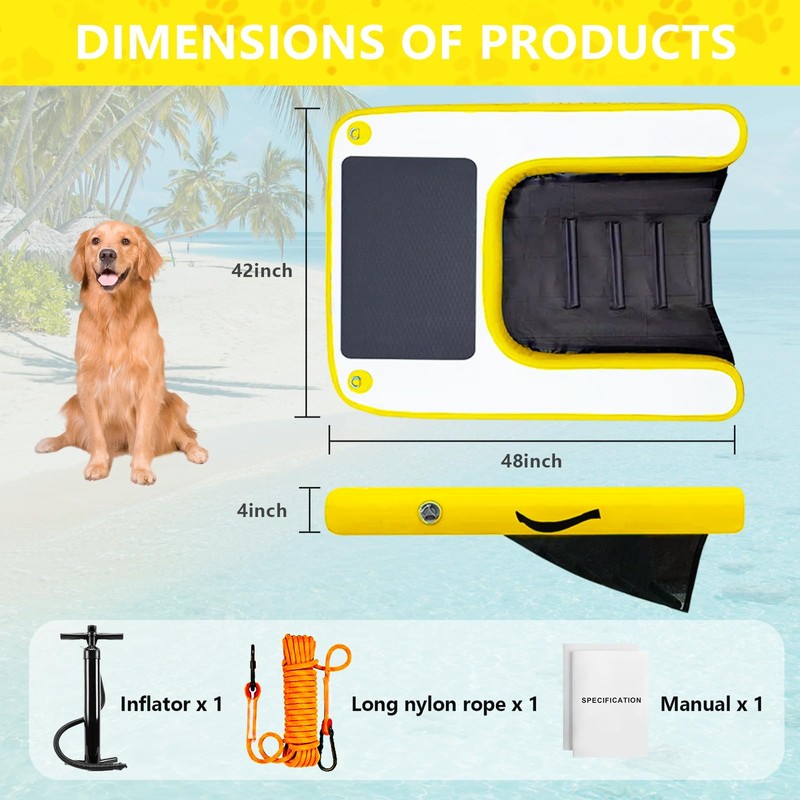 - DOG SWIM PLATFORM KIT--- Package includes 2 thick towing ropes and D-rings for secure attachment. You can go: pool, lake, ocean, boat, yacht, floating pier, to spend a good time.