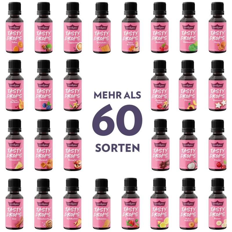 The GymQueen Tasty Drops are perfect for you if you don't want boring food and drinks, but want full taste without absorbing additional calories. Tasty Drops are wonderful for a lactose-free, vegan or gluten-free diet.