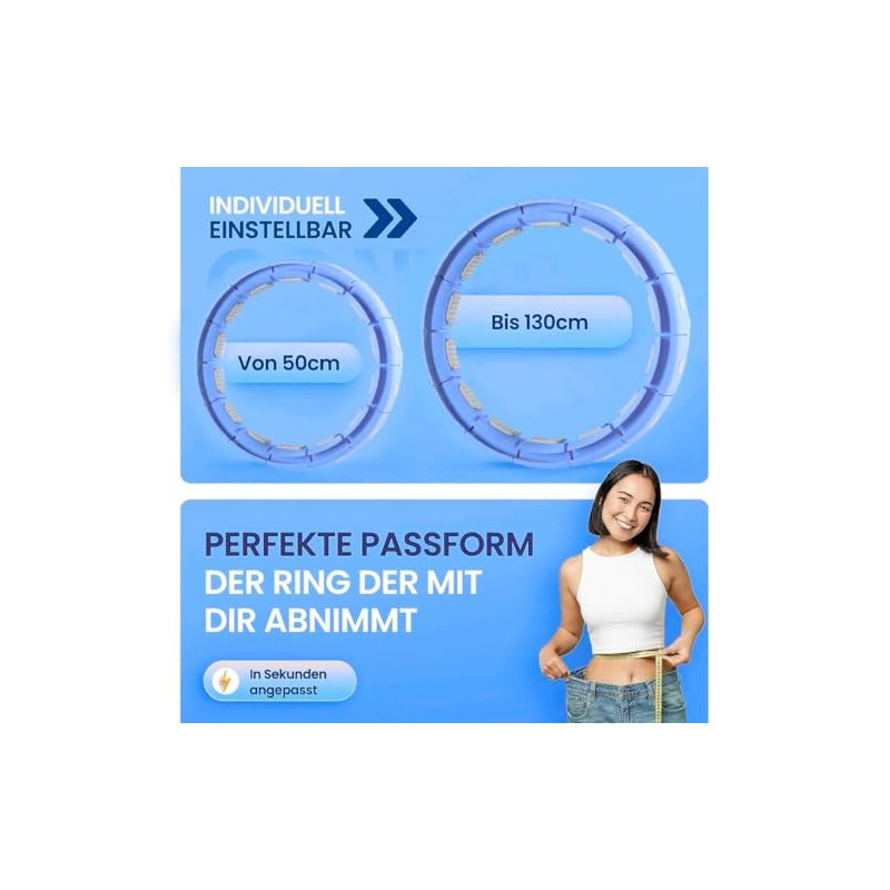 Sport von Zuhause aus - Durch den Gymside Hoopside Pro kannst du simpel und von zuhause aus Fett verbrennen und leicht abnehmen. In 30 Minuten kann man bis zu 800 Kalorien verbrennen. Das Hullern formt deine Taille, wirkt Aktiv gegen Bauchfett, Cellulite, hilft beim Muskelaufbau im Bauch- und Gesäßbereich und arbeitet direkt an den Problemzonen.