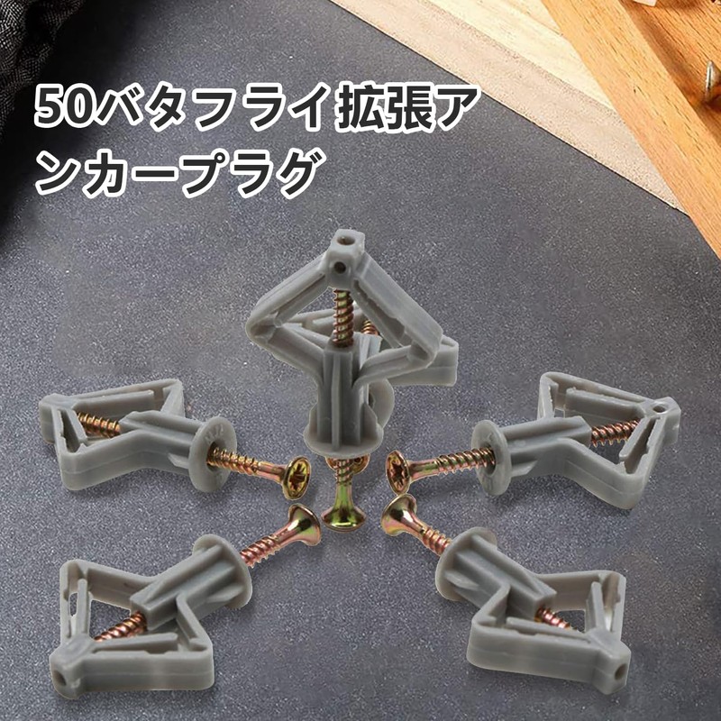 Gypsum Board Screws, Board Anchors, Gypsum Board Anchors, Set of 50, Butterfly Expansion Anchor Stopper, Hollow Wall Anchor, Strong Board Anchor Screw, Rotation Prevention, Fixing Tool