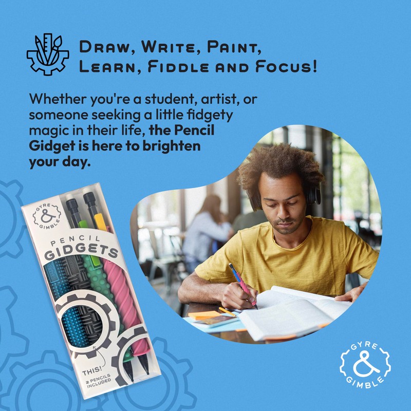• COMFORT AND CONTROL: The perfect thickness and feel to provide a secure grip so you can write as you always do. Our Gidgets effortlessly slide onto standard pencils, pens, or even paintbrushes, providing a relaxing snug fit for users of any age. Whether you're a student, artist, or someone seeking a little fidgety magic in their life, the Pencil Gidget is here to brighten your day. Does not fit on wooden pencils.