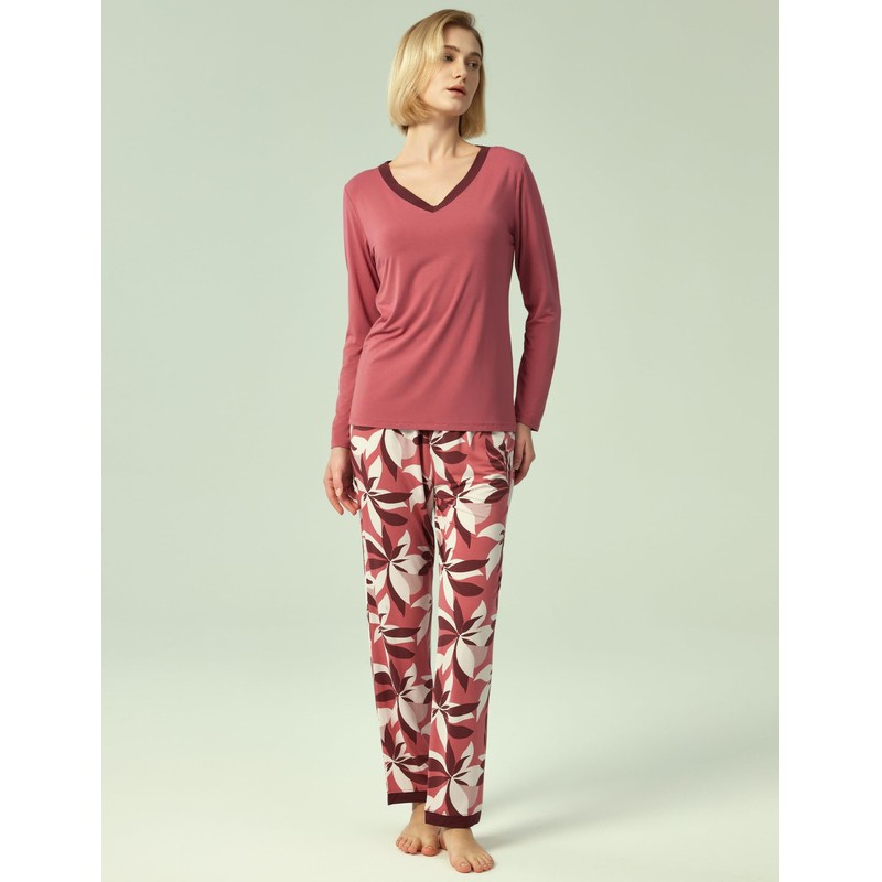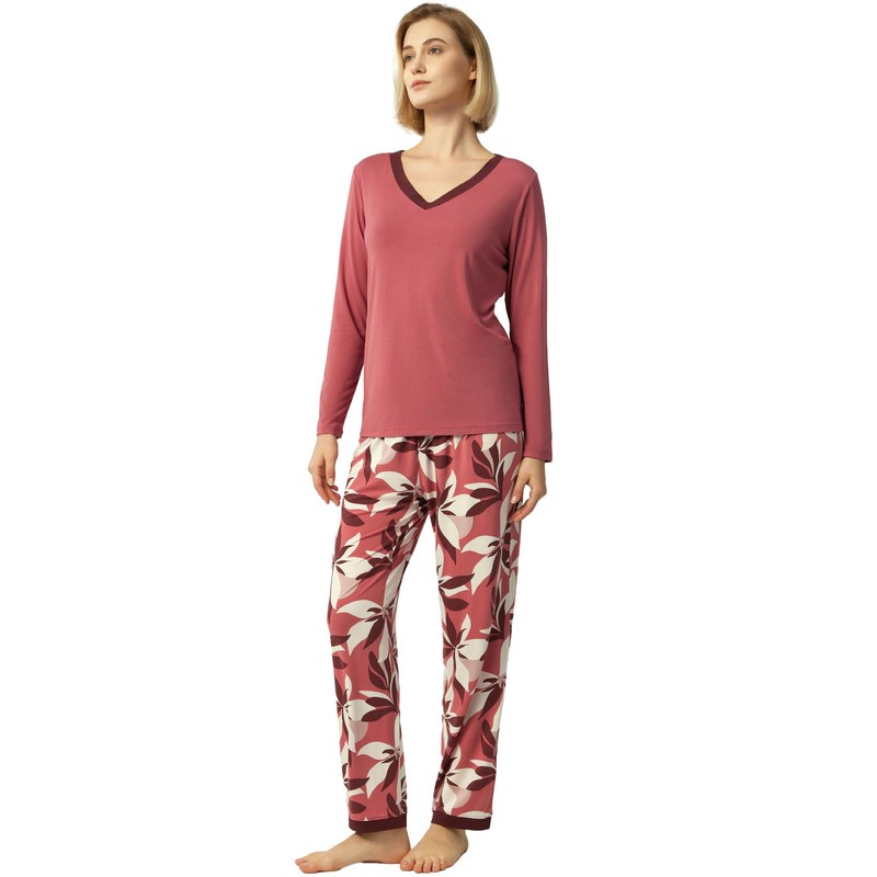 - EASY & CLASSIC STYLE: Two-piece PJs features roomy fit. Long sleeves top & Full-length pants provide the lightweight cozy coverage. Elastic waist. No pockets. V neck. Stretchy fabric let you move freely