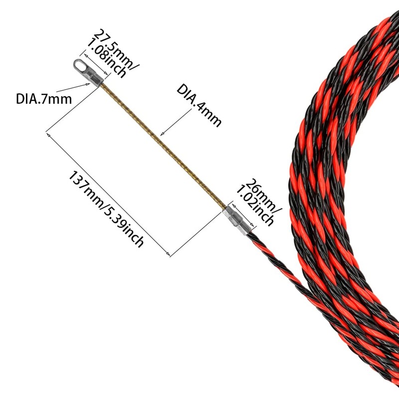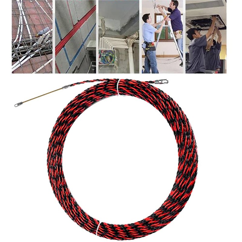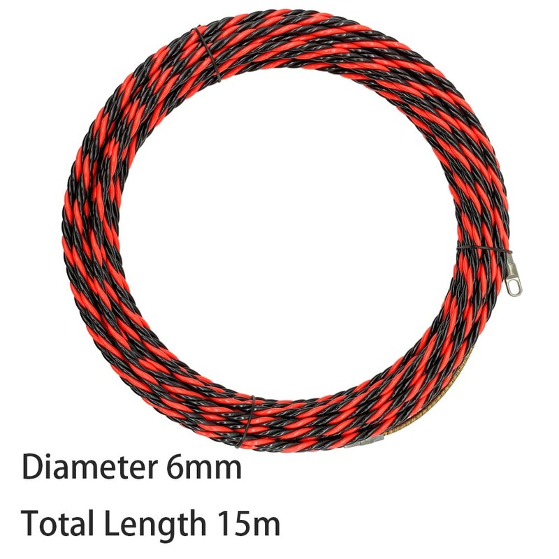 GYSRXS 15 m Cable Retraction Aid, Polyester Retractable Wire with 2 Guide Springs, Ideal Retractable Aid for Cable Laying, 6 mm Diameter (Red and Black)