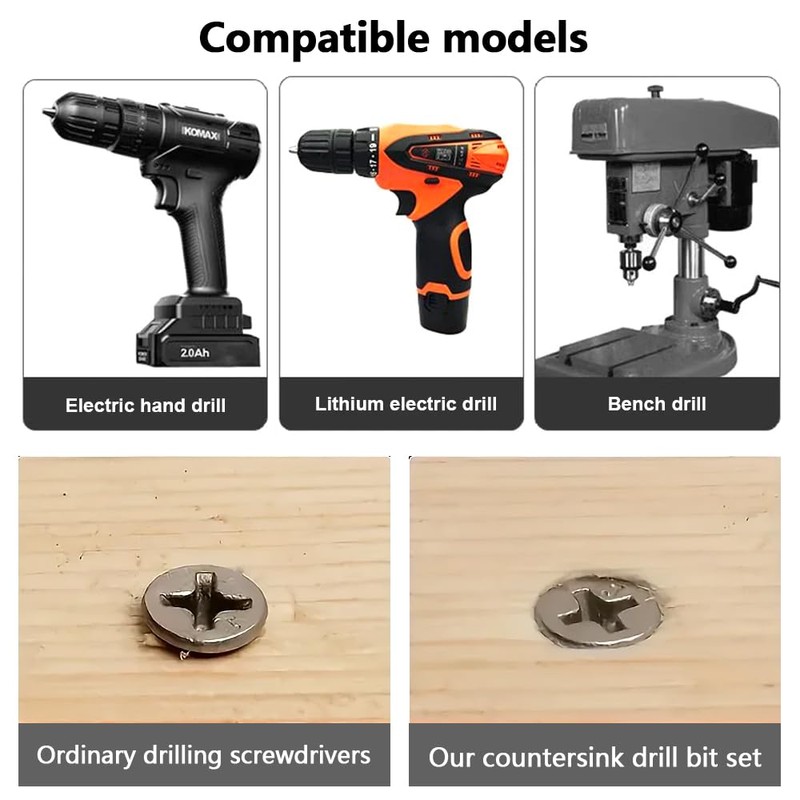 - Widely used: Countersink drill set is suitable for bench drills, hand drills and conventional electric drills, suitable for drilling and chamfering various materials such as wood, fibreboard, chipboard, plywood, plastic, PVC and rubber to meet different work requirements, very suitable for DIY enthusiasts and professionals