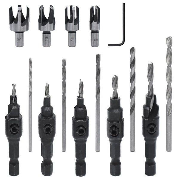 - Strong compatibility: 5 different sizes of countersink drill bits (5#、6#、8#、10#、12#) meet your needs, equipped with a 1/4 inch hex shank, compatible with most power tool drills