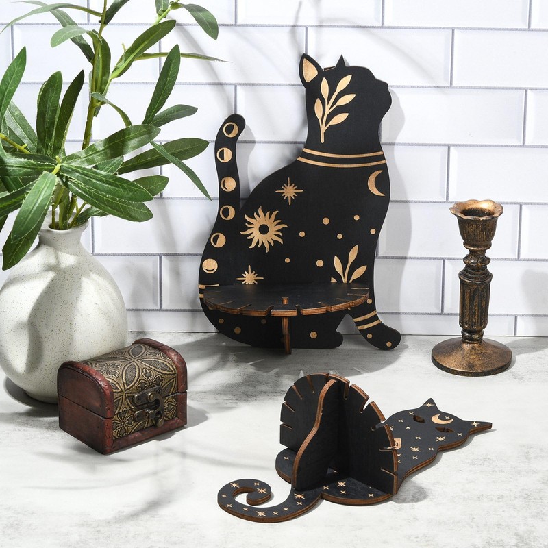 - Gothic Black Cat Design: These animal-themed floating shelves feature a unique black cat gothic design, adding a stylish and mystical touch to any room décor