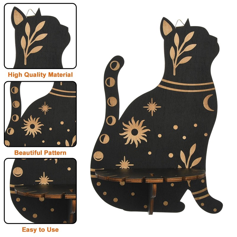 - Gothic Black Cat Design: These animal-themed floating shelves feature a unique black cat gothic design, adding a stylish and mystical touch to any room décor