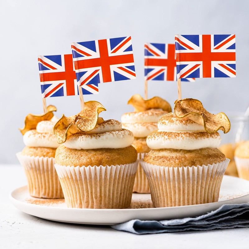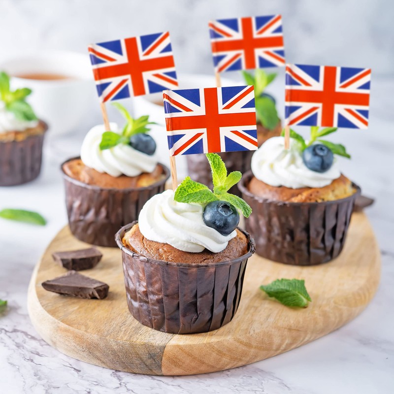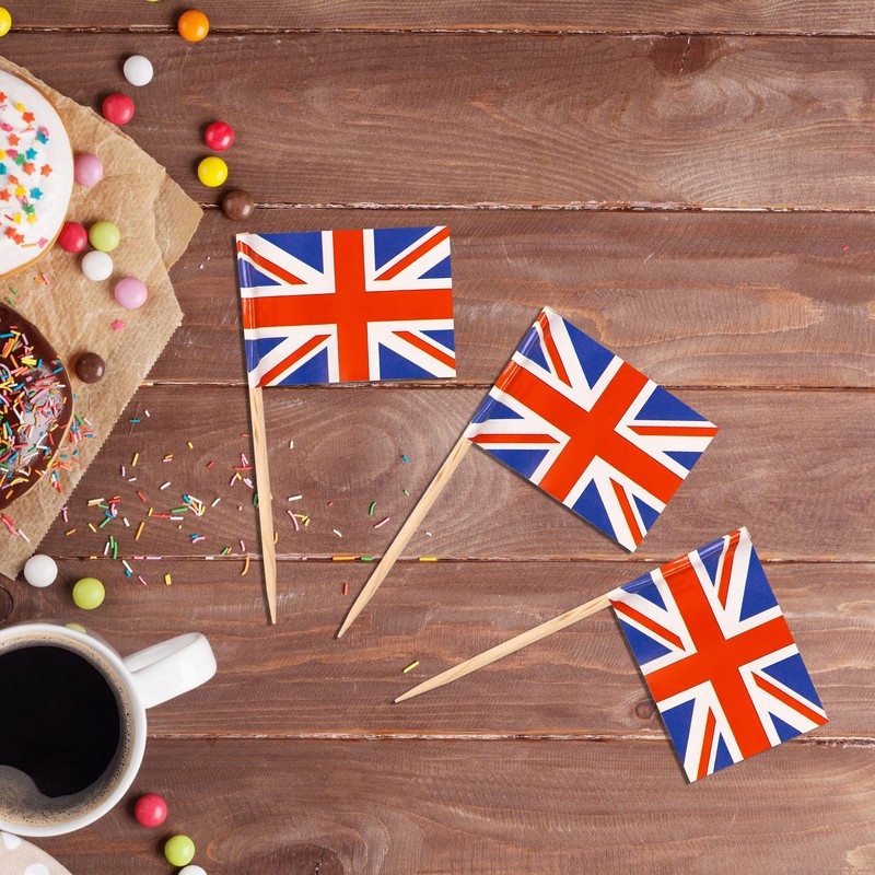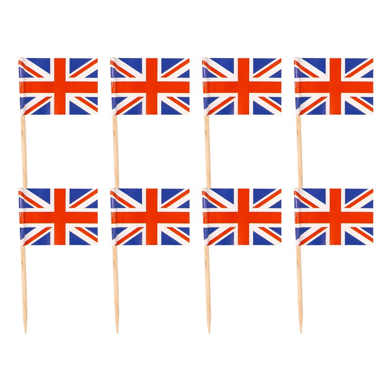 Gyufise 100Pcs Mini UK Flags Cupcake Toppers Double Sided British United Kingdom Toothpick Small Union Jack Flags Cupcake Pick Sticks for UK Party Supplies