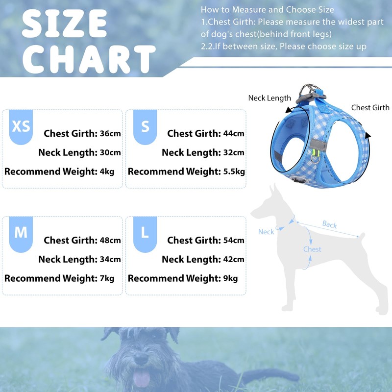 • 【Stylish Plaid Pattern & Durable Design】Fashionable yet functional dog vest harness combine scratch-resistant mesh with reinforced stitching for longevity. The small D-ring design is expanded to hang various small objects.
