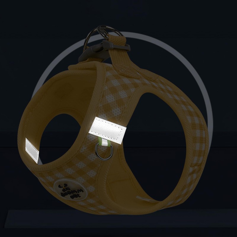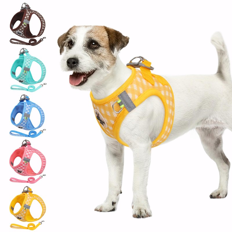 Gyuzh Dog Harness and Leash Set, Breathable Soft Mesh Vest Harnesses, Reflective Harness with Plaid Pattern, No Pull Pet Harnesses for Small Dogs & Cats, Yellow, S