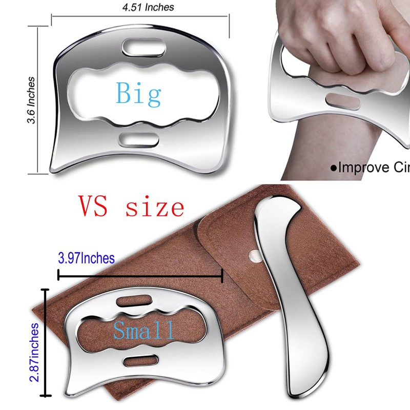- RELIEVE PAIN: gua sha stainless steel use the double-beveled edges to relief for muscle pain soreness after exercise out, accelerate blood circulation,Release lactic acid accumulation and fascial adhesion caused by muscle tension,faster recovery times.
