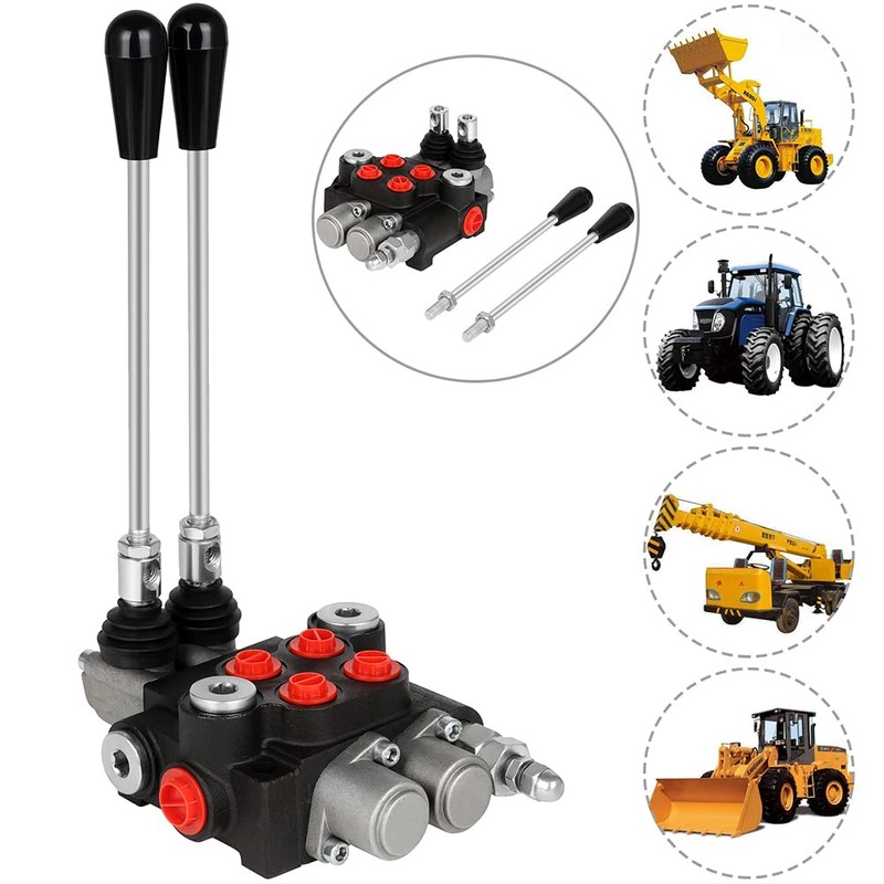• đź’–[Hydraulic 2 Spools Valve] - Equipped with 2 spools and G1/2" type inlet/outlet ports. Maximum pressure of this hydraulic is 3600 PSI, and maximum flow can reach 11 GPM. Widely used in small tractors, tractor loaders,log diverters and other machinery.
