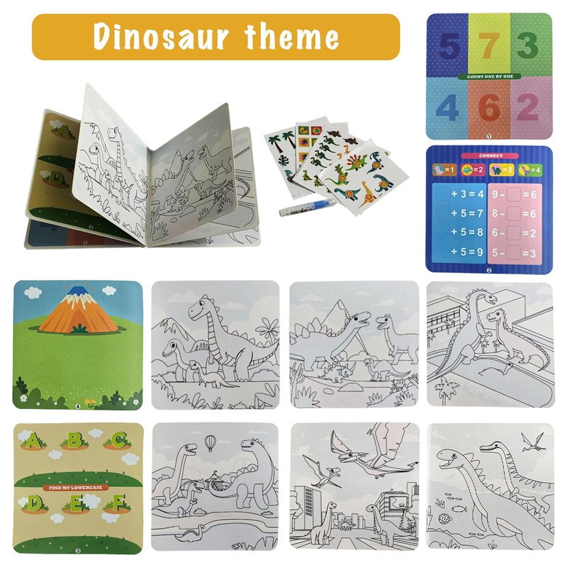 This dinosaur themed watercolor activity book perfectly combines coloring and sticker games, allowing children to enjoy the fun of drawing while learning mathematical knowledge.