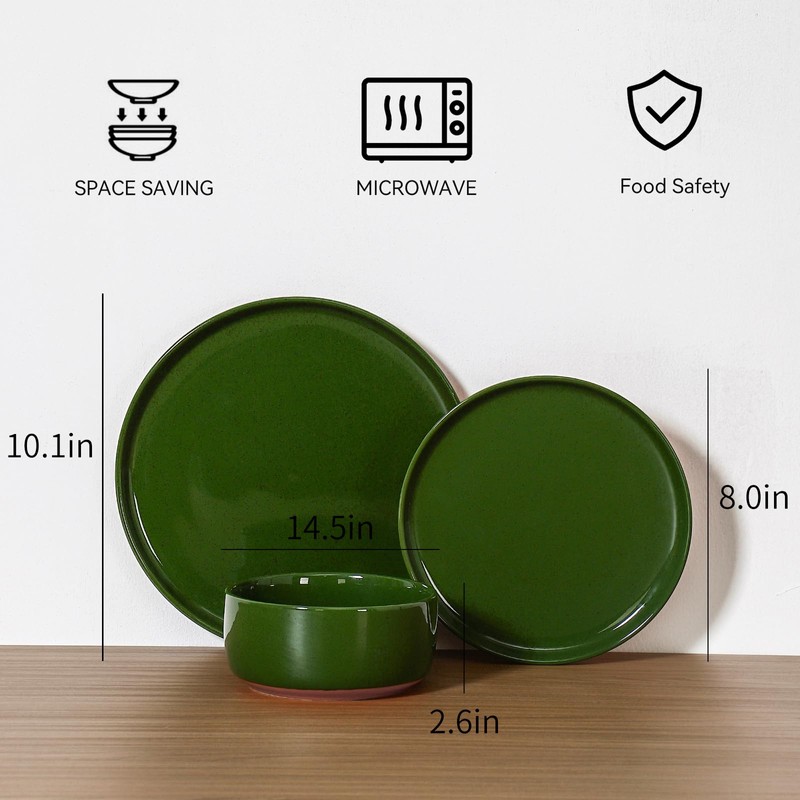 - HEALTHY & DURABLE STONEWARE: Crafted from 100% food-grade ceramic with non-toxic, lead-free glaze. Crafted at about 2330°F for 13 hours, our ceramic dinnerware sets develops an ultra-dense chip-resistant structure – proven to withstand daily use for years without cracking, fading, or losing vibrant color integrity.