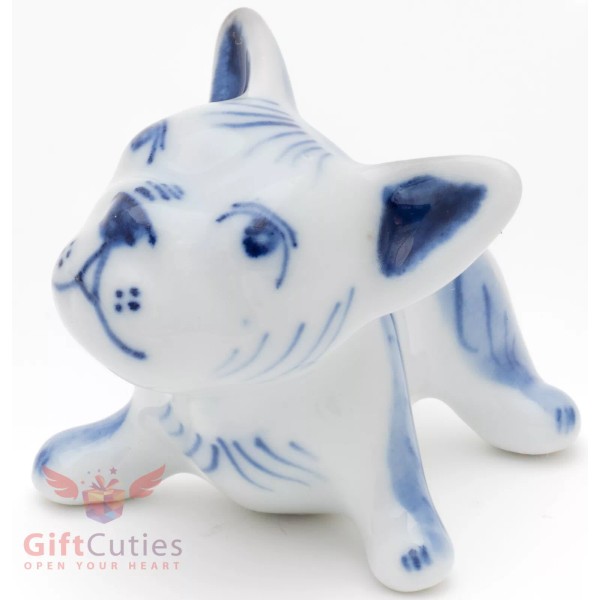 Gzhel Porcelain French Bulldog puppy Dog Figurine handmade