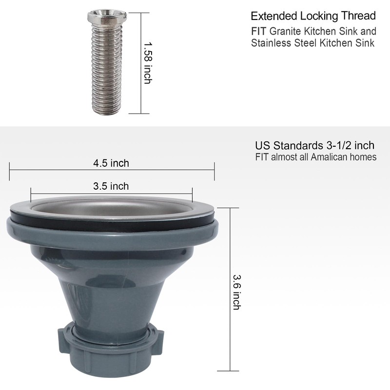 - Standard Size: Fits all 3-1/2-Inch kitchen sink drain openning holes.