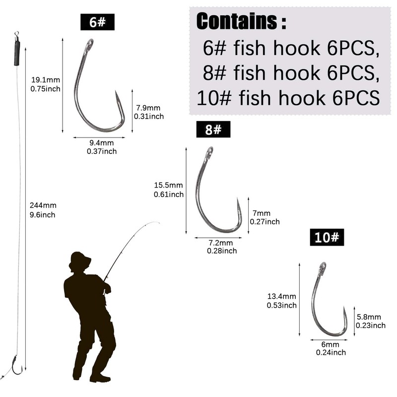 - You will receive: 18 curved carp hooks, 3 sizes, each 6 # 8 # 10 #, 6 of each size, is an ideal choice for 12-20 mm carp bait, withstands the pulling force of 12 lb / 5.4 kg.