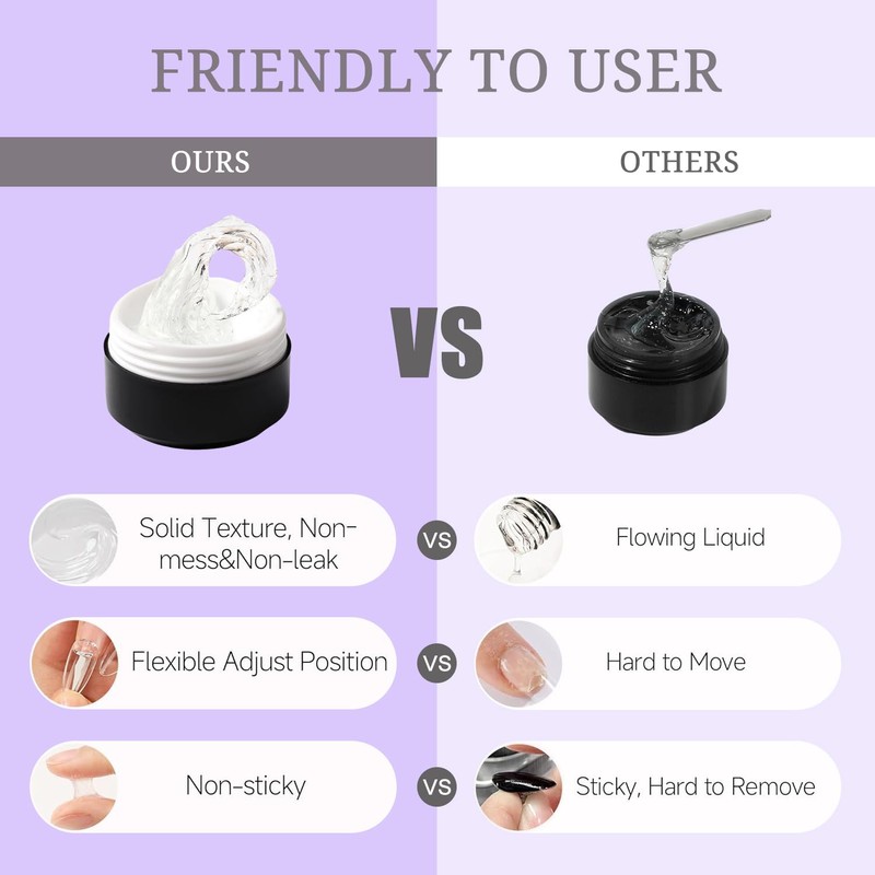 - EASY TO USE & BEGINNER FRIENDLY This carving gel for nails is easy to use. The firm texture makes it non-stick to hand and easy to manipulate, quickly build the gel nails without sticking to your hands or nail art tools. No mess, no residue. No need for sliding solution, monomer liquid, nail shapes for acrylic nail kit. It must be cured for 60-120s using UV/LED nail lamp.