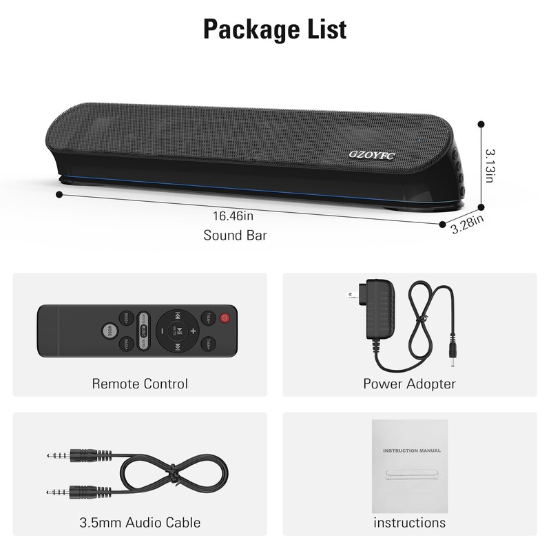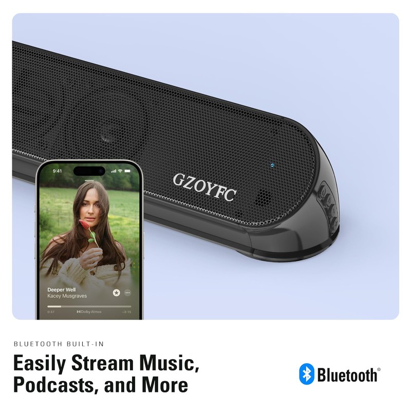 GZOYFC Sound Bar for Smart TV, Soundbar with Bluetooth/ARC/Opt/AUX Connect, Auto Volume Boost, 3 Equalizer Modes, 2 in 1 Detachable Soundbar for TV/PC/Gaming/Projectors