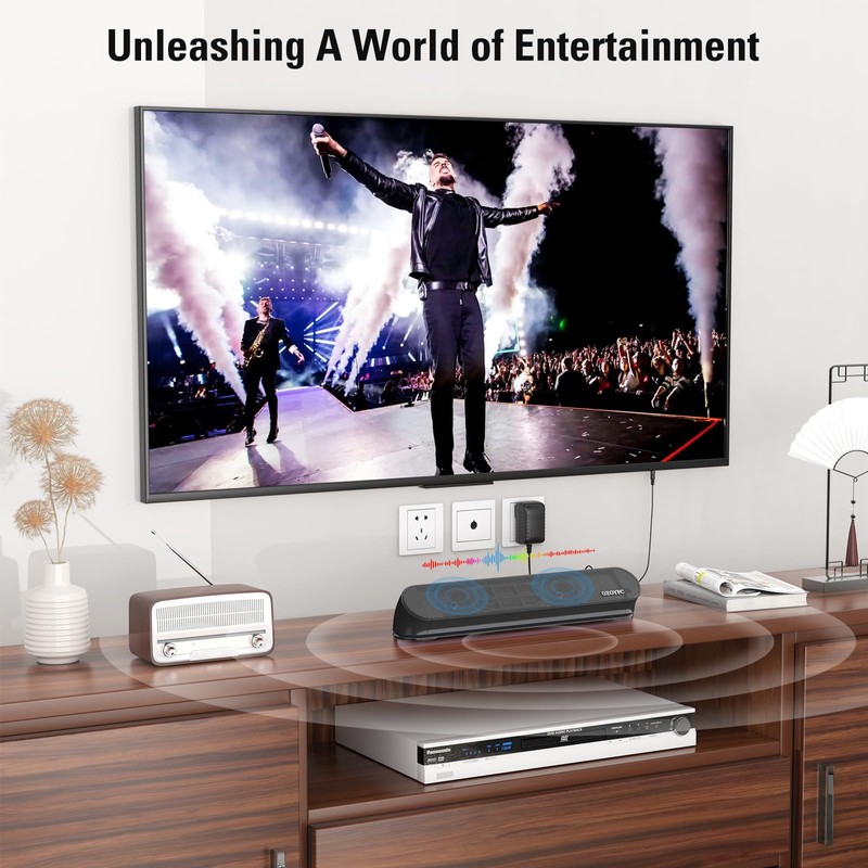 - 【Bluetooth-Enabled Versatility】Functioning as a bluetooth soundbar, it doubles as bluetooth speakers for tv, offering seamless wireless connectivity. Whether paired with a smart TV or a regular one, this soundbar for tv enhances convenience, fitting effortlessly into home improvement projects focused on audio upgrades