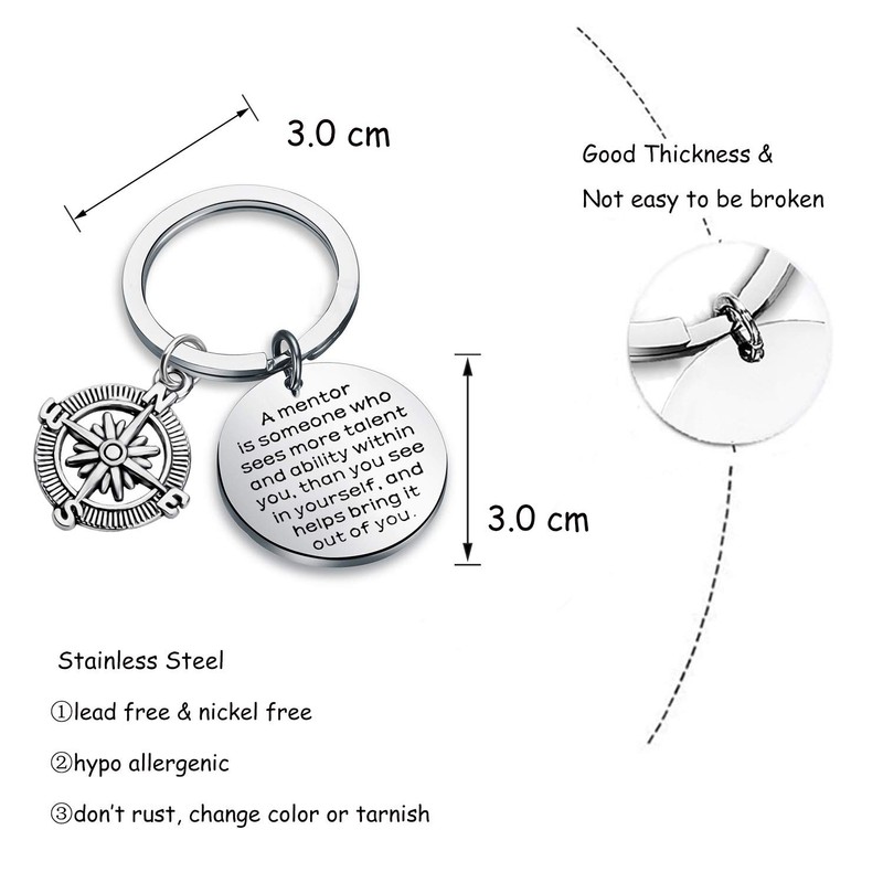 Gzrlyf Mentor Keychain with Compass Charm Mentor Appreciation Gifts for Mentor Leader Boss Coworker Leaving Gifts (Mentor Keychain C)