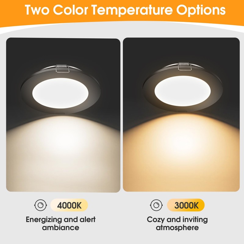 - Montaje empotrado: montaje empotrado con clips de resorte, no necesita tornillo, monta la luz LED de disco en una fila en el techo y puedes obtener una iluminación ordenada, suave y uniforme