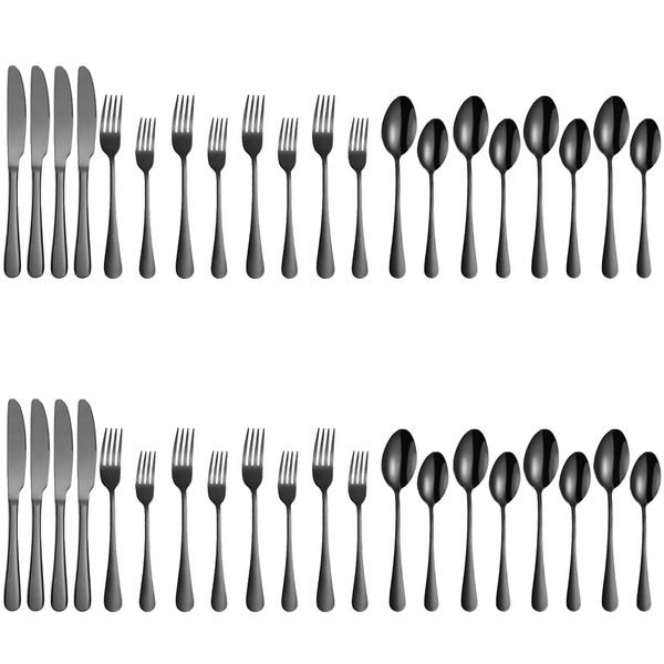 GZYUJIEMEDIA 40-Piece Silverware Set for 8, Stainless Steel Flatware Set in Black, Mirror Polished Cutlery Utensil Set, Durable Dining Tableware, Includes Forks, Knives, Spoons, Dishwasher Safe