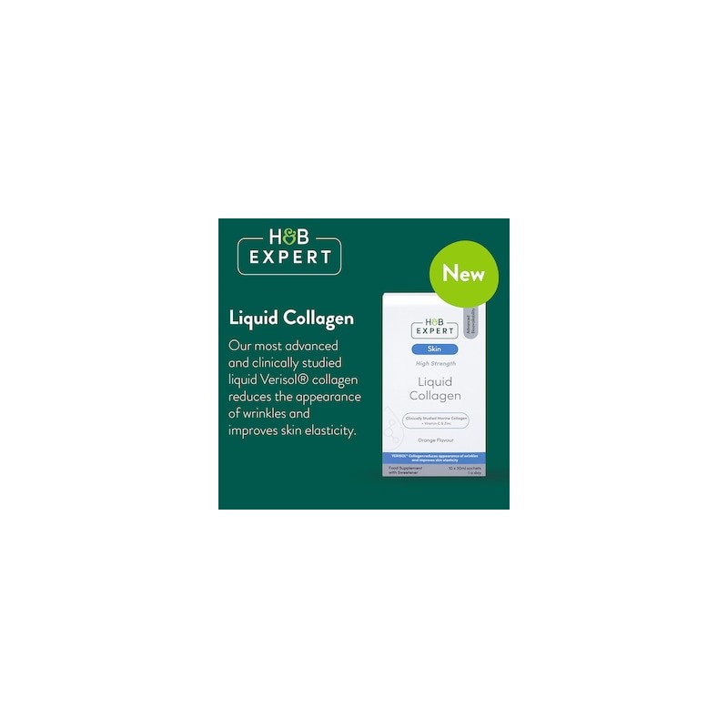 Holland & Barrett Expert Marine Collagen Liquid Sachets features our most advanced and clinically studied liquid, Verisol collagen, to support with the appearance of wrinkles and your skin’s elasticity.
